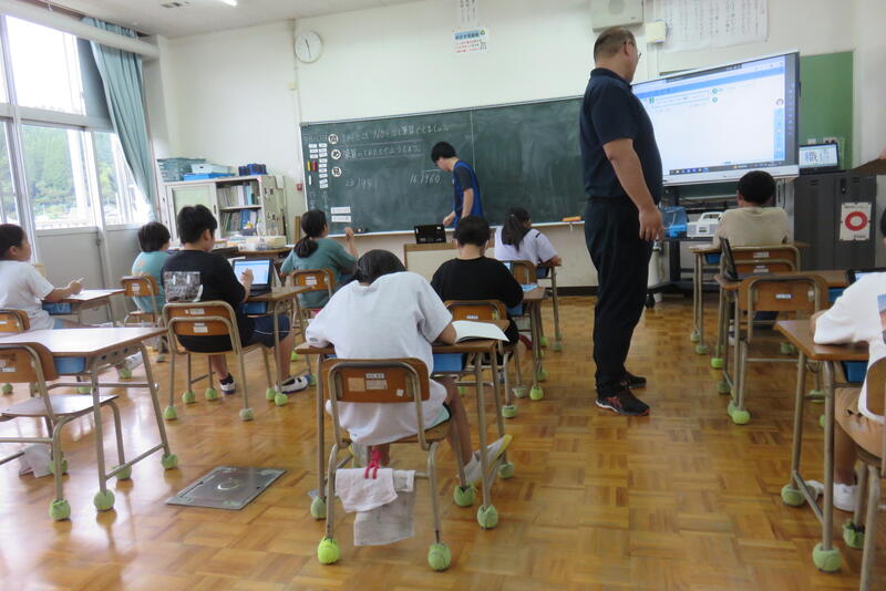 【4,5年生】算数 わり算に取り組んでいます。今日は、4,5年生別々の先生と勉強しています。
