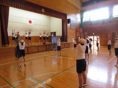 5月2日(火)、5月21日(日)に開催される運動会に向けて、5,6年生がラジオ体操の練習に励みました。ステージ上では、リーダーが手本を見せ、みんながよりよい体操ができるように頑張る姿を見ることができました。運動会に向けて、ラジオ体操や各学年の走りや演技がとても楽しみです。