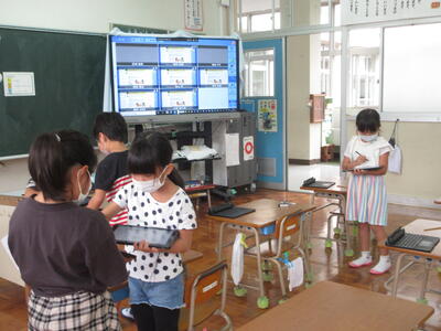 10月18日(火)、4年生は5,6時間目にホタルの幼虫やホタルを育てることについて、オンラインや実際にカワニナやホタルの幼虫を観察して学習しました。