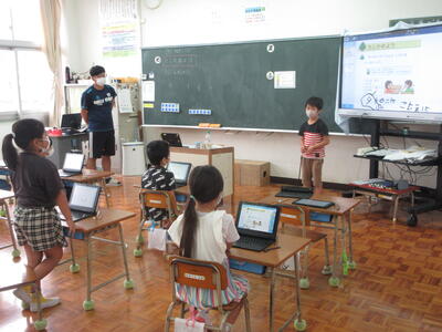 南関第二小学校では、毎週水曜日をHappy English Dayとして、英語に慣れ親しむ一日としています。英語の授業でも英語表現を使い自分の考えや気持ち、自分のことを伝えていきます。