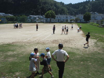 夏休みが明け、子どもたちの元気な姿が学校に戻ってきました。昼休みには、久しぶりに運動場で楽しく遊ぶ姿が見られました。熱中症に気をつけながら、友だちや先生と仲良く遊んでいました。