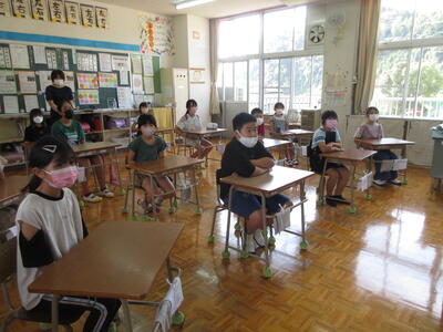8月29日(月)、夏休み期間中を終え、子どもたちが元気に登校してきました。学校にも活気が戻ってきました。最初にオンラインにて夏休み明け集会を行い、校長先生からお話がありました。夏休み中に大きなけがや病気がなく過ごしたことを喜び、今後も新型コロナウイルス感染症への備えが大事だとお話しになりました。