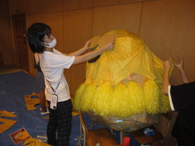 9月2日(金)5,6時間目に、夏の学年活動で行ったかかしづくりの続きを行いました。いよいよ完成間近となりました。今回も平日の昼間にもかかわらず、保護者の方方が来校され応援していただきました。