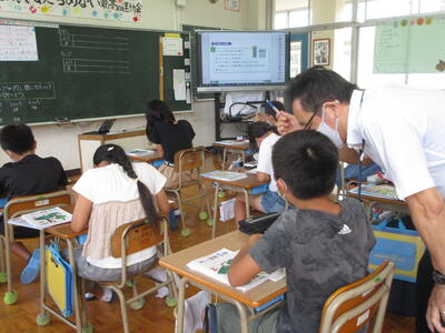 9月8日(木)、南関町教育委員会から寺田学校教育専門指導員が来校され、5年生と4年生の算数科授業を見ていただき、それぞれの授業者ごとに助言を頂きました。南関第二小学校の先生方が、教員一人一人の授業力向上のために、貴重な学習構想・省察の習慣化の一環として充実した時間となっています。