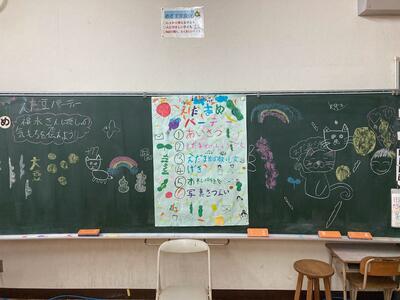 翌日19日(火)には、日頃の感謝の気持ちを伝えるために、福永さんを招待して枝豆パーティーを開きました。枝豆の収穫と試食の後、子どもたちが考えた劇をしたり(大成功でした!)、お礼のお手紙を読んだりして、福永さんに感謝の気持ちを伝えました。福永さんにとても喜んでいただき、たくさんほめていただき、満足そうな様子の子どもたちでした。枝豆パーティーの振り返りで、「今日食べた枝豆は、今までで一番あまくておいしくて、皮までたべたくなりました。」「福永さんにおんがえしのつもりでしたパーティーで、喜んでもらえたからよかった。」と話していた子どもたち。学習を終えて、また一段と成長したように思います。