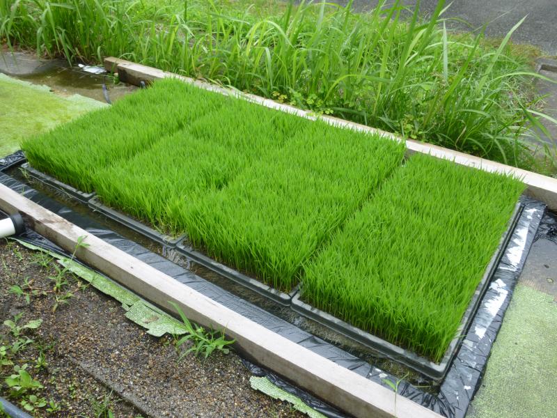 西田さんのご指導のもと、種まきをしてから2週間あまりが経ち、苗が随分成長しました。きれいな緑色をし、真っ直ぐ伸びている姿に大きな生命力を感じます。しっかり育ってたくさんの米を実らせてほしいものです。田植えが待ち遠しいです。