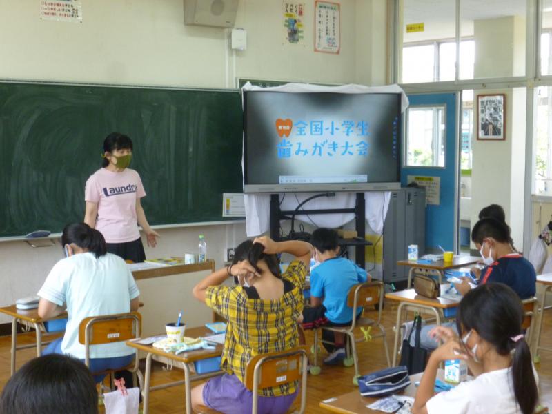 6月23日(水)に、養護の先生による歯みがき指導がありました。毎年、6月4日は、「歯と口の健康週間」の始まりの日です。そこで、養護の先生が、「第78回 全国小学生歯みがき大会」に申し込んでくださり、大会のDVDを見ながら歯ブラシやデンタルフロスの使い方を学習しました。歯ブラシの毛先が入りにくい歯間には、デンタルフロスが便利ですね。8020運動(80歳になっても20本以上自分の歯を保とう)が始まってから久しいですが、20本以上の歯があれば、食生活にほぼ満足することができると言われています。そのため、「生涯、自分の歯で食べる楽しみを味わえるように」との願いを込めてこの運動が始められました。今日の学習を生かして、今の内から歯を大切にしてほしいと思います。