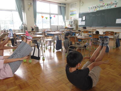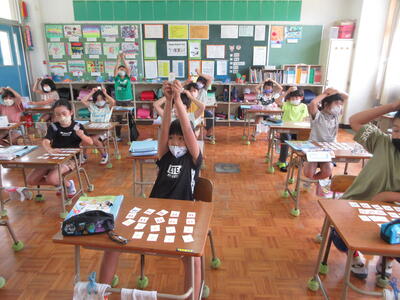 6月10日(金)のすくすく集会(オンライン)にて、タイイクイインカイから体力向上について役に立つ発表がありました。実際に教室内でできるバランス運動などが紹介され、実際に行う時間もありました。家庭でもできるのでお子さんから聞かれてされてみてください。