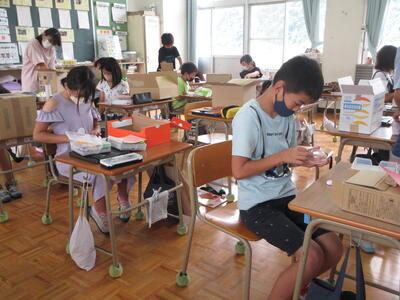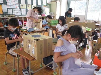 10日(金)、5年生が図工の時間に工作をしています。箱の中などに工作を工夫して、箱のある穴からのぞいたときに素晴らしい空間を望むことができるようです。完成へ向けて熱心に取り組みました。片付けも早くメリハリのあるテキパキとした行動も良かったです。