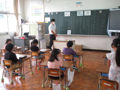 6月21日(火)3時間目に、大津山先生による4年生理科の研究授業が行われました。「とじこめた空気や水」の単元で、子供たちはとじこめた空気に力を加えると空気の体積や手ごたえはどうなるのだろうかということを学習していきました。子供たちは意欲的に実験を行い、空気の体積が小さくなるが手ごたえは大きくなり押し返す力が大きくなることが分かりました。