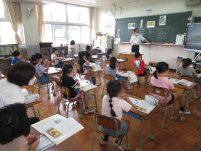 22日(水)、英語専科の小坂先生の研究授業が5年生で行われました。自分の好きな教科について紹介する活動を行いました。