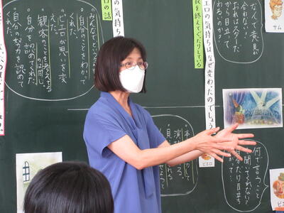 17日(金)、6年生で吉田 里恵先生が道徳科の研究授業を行いました。「ブランコ乗りとピエロ」の教材文をもとに、立場も考え方も異なるピエロとサムが互いに理解するようになる姿を通して、広い心で異なる意見や立場を尊重していこうとする態度を育てるというねらいでした。吉田 里恵先生は授業を終わって、「子供たちが自分の生活と重ねて考えようとしていたことが、うれしかった。友だちの意見をしっかり聞いていました。」述べていました。先生も6年生もがんばりました。