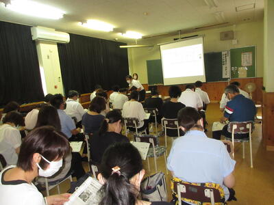 6月21日(火)、南関第二小学校の多目的ホールにて、南関町の4つの小学校と中学校から合計33人が参加し、熊本の学びステップアップ研修を実施しました。熊本県玉名教育事務所から西村 奈陽子指導主事を講師として迎え、「個に応じた学びを意識した授業改善」や「子供の側からの単元デザイン」について、ペアやグループで話し合ったり、講話を聞いたりするなど学びを深めることができました。