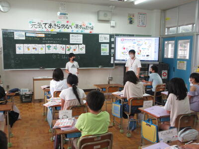 6月13日と15日に、玉名教育事務所の松内スクールカウンセラーに来校いただき、3年生から6年生まで、各学級でストレスマネジメントについて学習しました。ストレス(どきどき、イライラ)がかかったときどうするのか、対処法を学習したり、相手の相談を聞くときの態度について練習をしたりしました。最後に、リラックス方を教えていただきました。