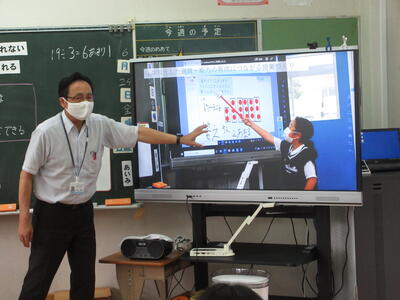 授業研究会の講師には、日頃からお世話になっている南関町教育委員会学校教育専門指導員の寺田哲也先生においでいただき、学校における算数科の研究の推進や学校で育てたい資質能力の育成について、分かりやすく丁寧に素敵な写真を交えて教えていただきました。