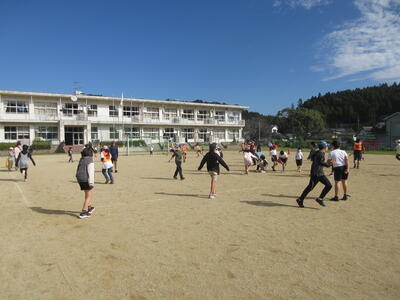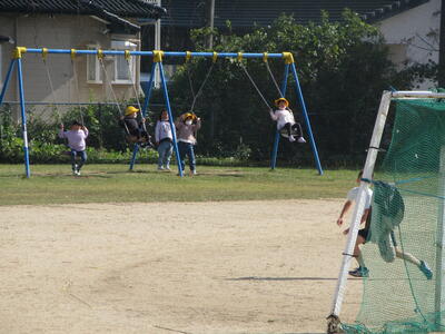 子供達は運動場に出て遊んでいます。