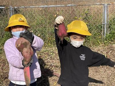 11月15日(火)、1,2年生がいもうえをして、育っていた芋の収穫を行いました。たくさん収穫がありました。