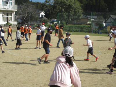 業間の時間に、体育委員会が企画をして業間の時間に体力向上を図るために、縦割り班を使って鬼ごっこランランタイムを行いました。