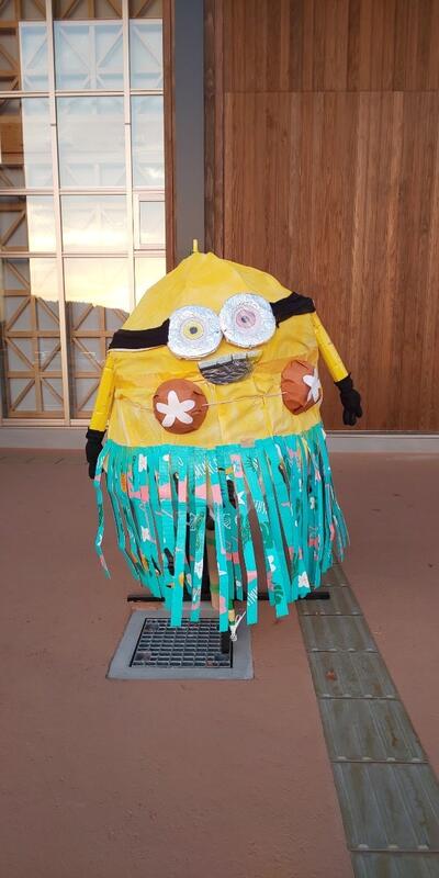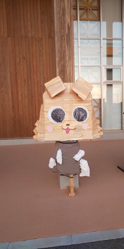 南関第二小学校で作ったかかしが、町の小学校のかかしと一緒に役場に展示されています。
