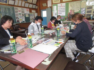5人の委員の皆さんと教育委員会から松本先生がいらっしゃいました。