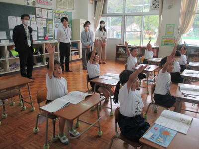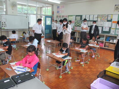 5月30日(火)、国家公務員4人(外務省、財務省、国土交通省、農林水産省)が来校され、南関町教育長を始め教育委員の方々や総務課の方々とともに、南関第二小学校で授業参観をされました。