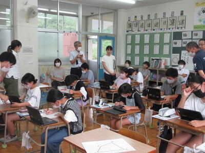 7月12日(水)、2,3年生複式学級の授業の様子です。