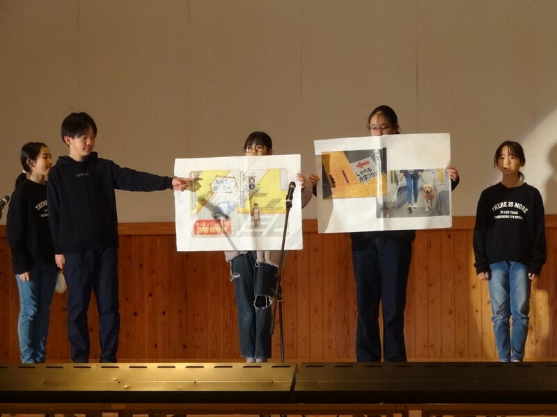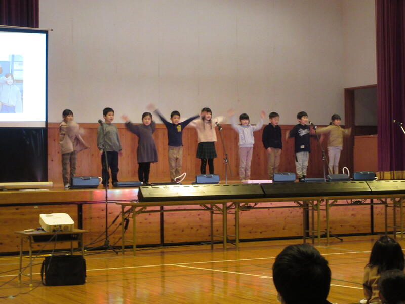 2、3年生が声を揃えて言葉を大切に読んでいます。