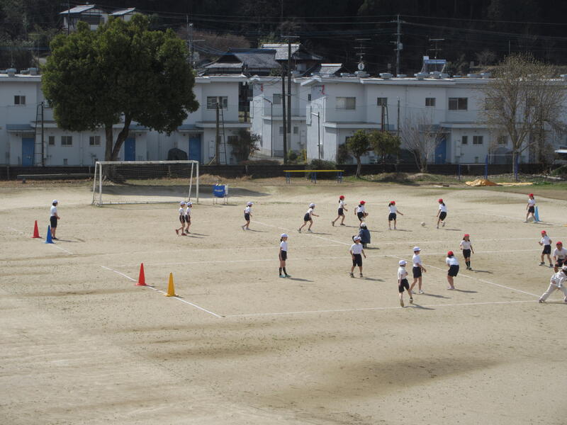 2月27日(火)、3,4年生は運動場で体育を頑張っていました。