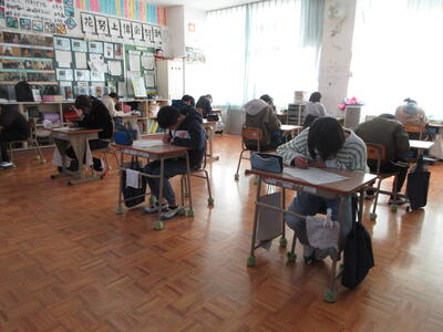 2月27日(火)、6年生は6時間目に算数の復習のプリントに集中して取り組みました。
