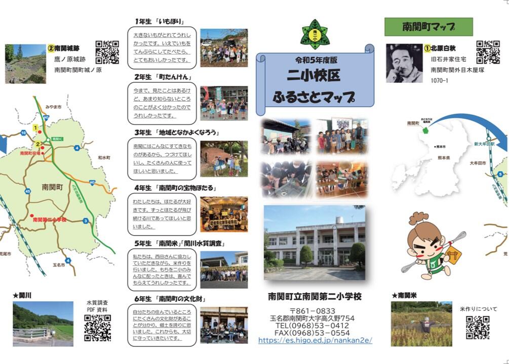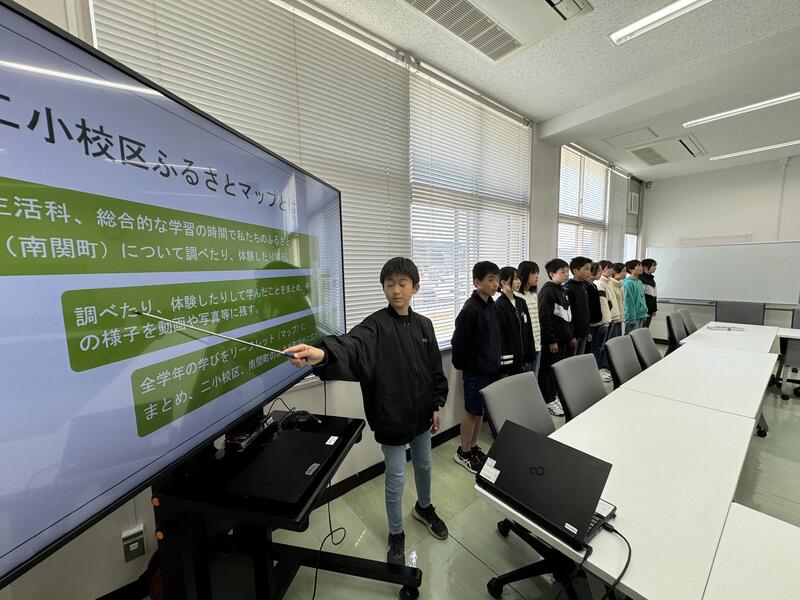 ふるさとについての学習から、まとめた動画で発信して、南関町役場でのふるさとマップのプレゼンなど