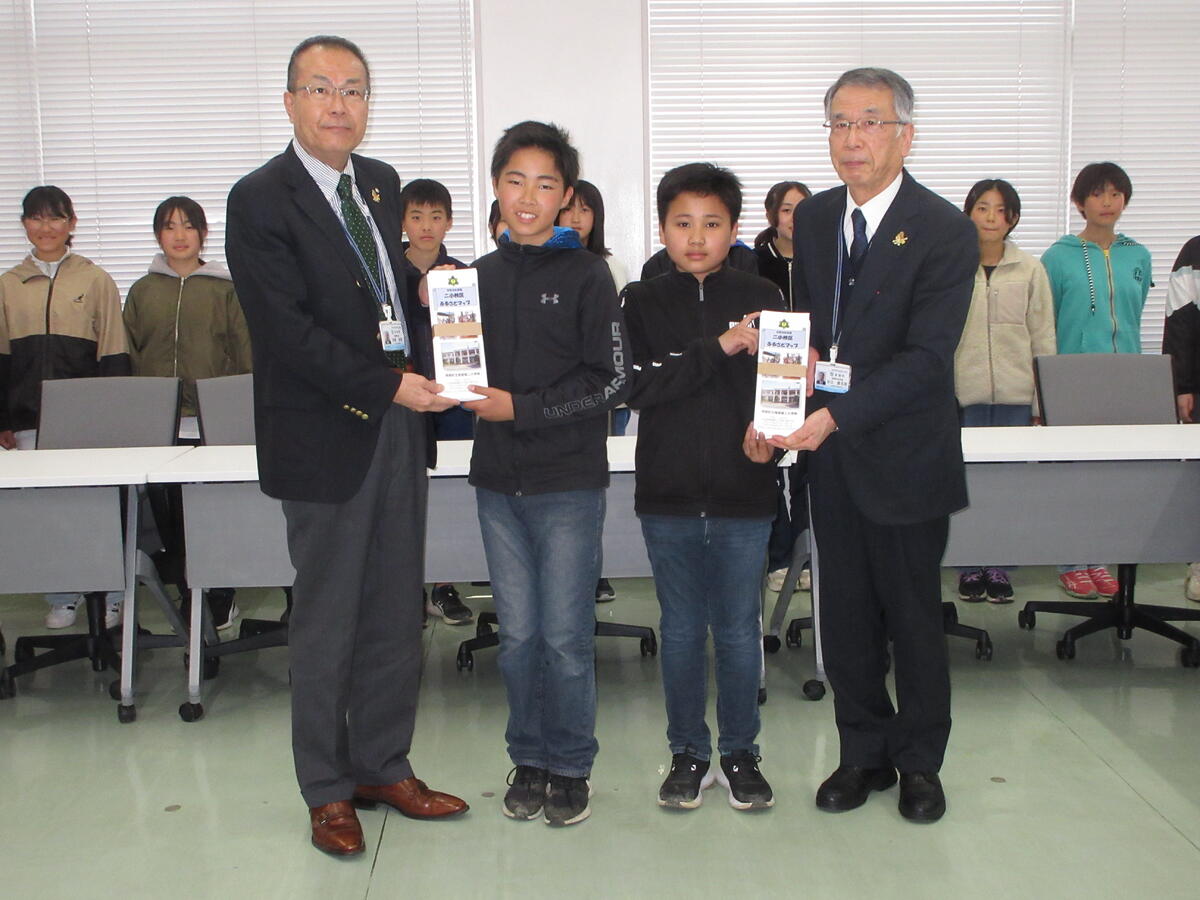 南関第二小学校の代表として6年生が町役場を訪問して、南関町町長と教育長さんに