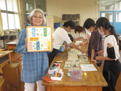 山鹿から松本てるみ先生に来校され、素晴らしくきれいな栞づくりの材料を準備していただき、丁寧にご指導され子どもたちも熱心に取り組むことができました。