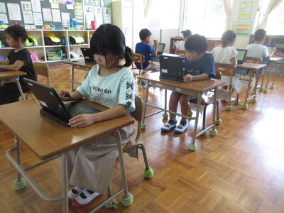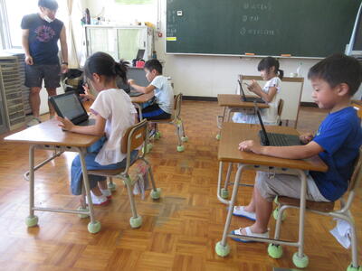 1年生はタブレット端末を使い国語の学習を進めていました。