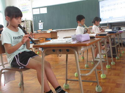 7月6日(木)、4年生の音楽科授業の様子です。