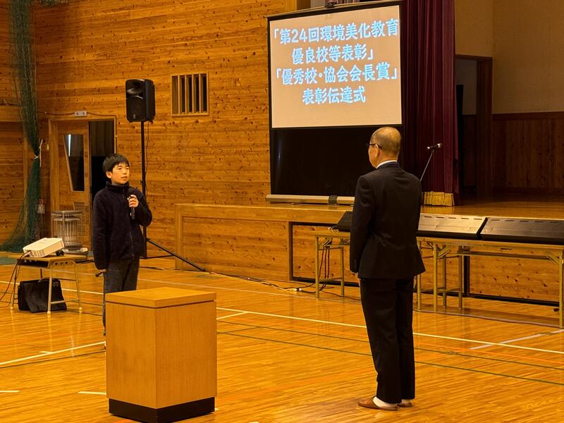 「第24回環境美化教育優秀校・協会会長賞」 表彰伝達式がありました。