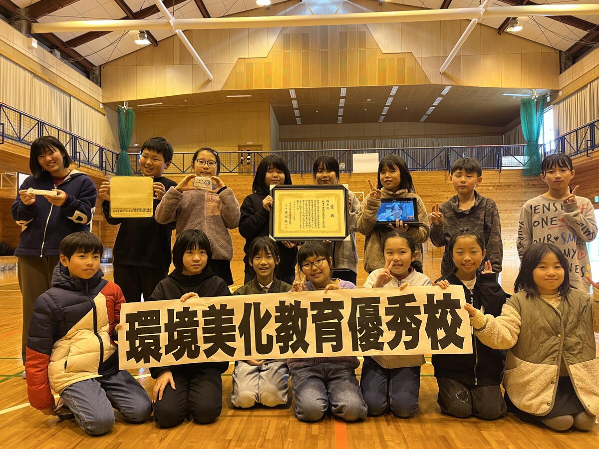 公益社団法人食品容器環境美化協会(略称:食環協、会長:那須 俊一)から、本年度の「環境美化教育優良校等表彰事業」において、都道府県より推薦を受けた全国の小・中学校等の中から優秀校6校の中に選ばれ、表彰をいただきました。