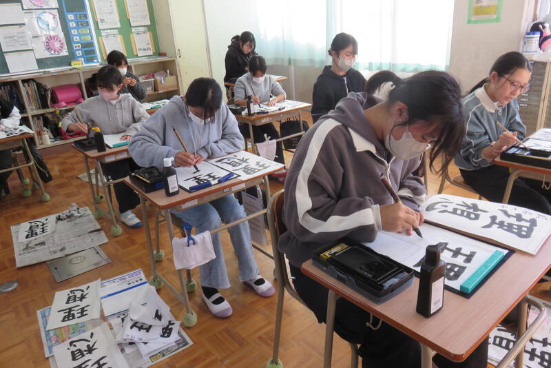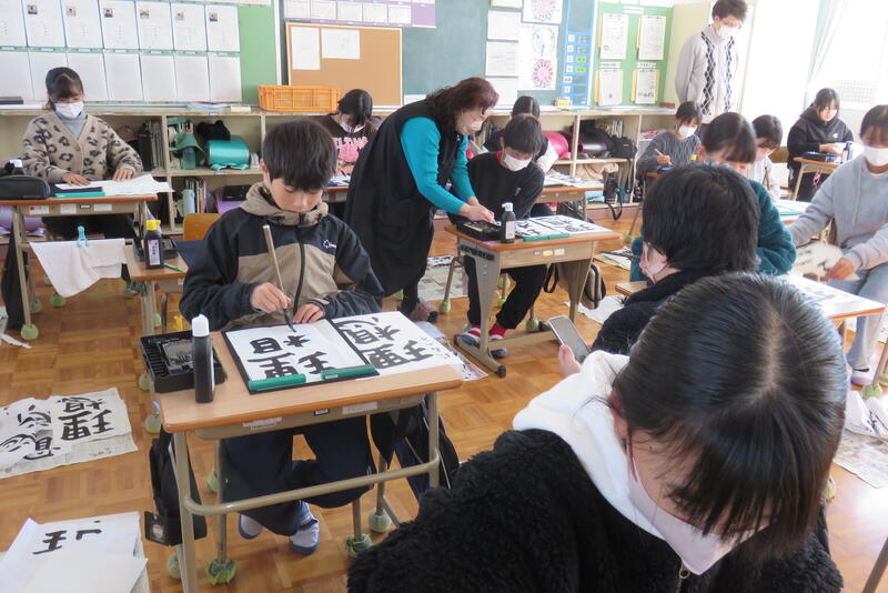 柳川先生に来ていただいて、4年生は「元気」、5年生は「初春」を書きました。