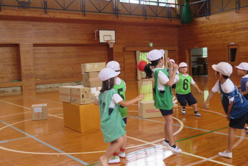 縦割り班でのドッチボール大会を計画してくれました。7分間ずつの3交代で、下級生が上級生にボールを当てたりすると、大歓声があがっていました。みんな楽しく遊んでいました。