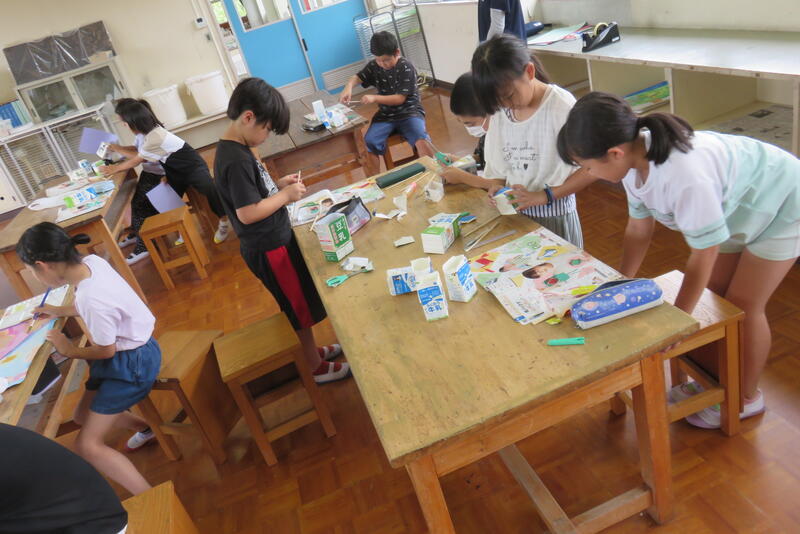 4,5年生が作ったもち米(田植え、稲刈り、かげぼし、脱穀)を、婦人会の方や保護者に協力していただいて、549個の餅を丸めました。パックに詰めて、米作りでお世話になったお米先生の西田さんや手伝っていただいた方々、全校児童や先生方に配りました。さっそく持ち帰り、おいしくいただきました。
