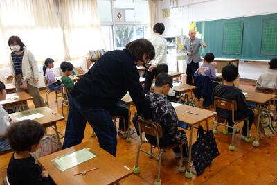 ゆっくり、しっかり、気持ちをこめて、先生の声かけに励まされながら、子供たちは集中して取り組み、自分の文字と向き合う時間を大切にしていました。正しい姿勢でていねいにこれからも取り組んでほしいと思います。