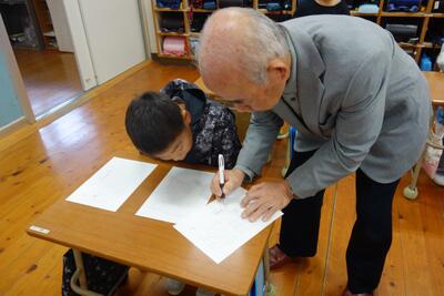 2年生は鉛筆を使っての硬筆学習。姿勢を正し、ゆっくりと丁寧に文字を書くことの大切さを学びました。 どの子も、書くことに集中しながら、一生懸命に取り組んでいました。大里先生には昨日と今日の二日間にわたり大変ありがとうございました。