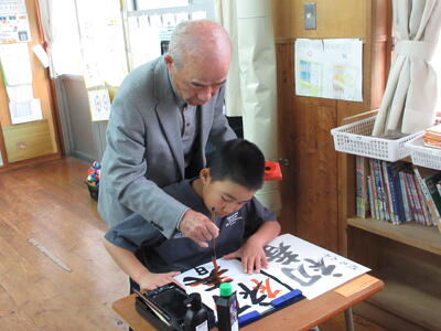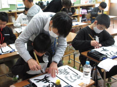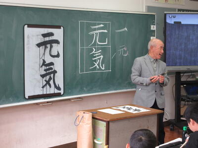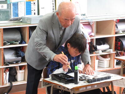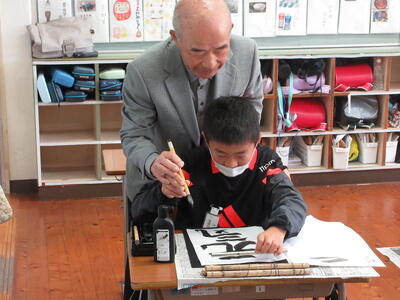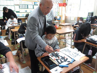 12月11日(木)、習字の先生の大里耕守先生をお迎えし、4・5年生は毛筆、2年生は硬筆の特別授業に取り組みました。