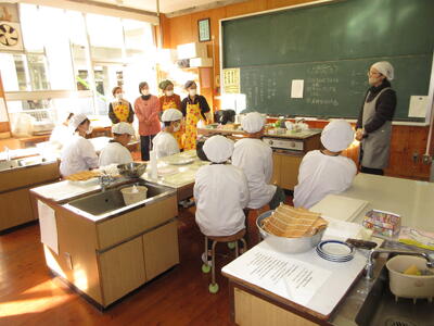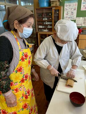 12月12日(金)、6年生が郷土学習「大好き!南関町」の一環として南関あげ巻き寿司づくりに取り組みました。婦人会の方4名に来校いただき、子供たちは分からないところをていねいに教わりながら安心して作業を進めることができました。南関第三小学校の校区にある塩山食品さんからは、油抜きしてだしがよくしみ込んだ南関あげや椎茸、卵などの具材をご提供いただき、心のこもった味わいが生まれました。