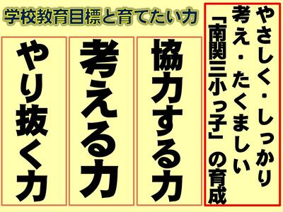 「やさしく・しっかり考え・たくましい南関三小っ子」が育つように学校と保護者、地域、南関町の教育行政のみなさんでウェルビーイングが循環する「地域とともにある学校」を目指しています。