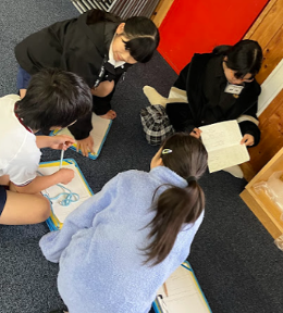 国語「もう一つの物語」の授業で物語の構成を学習しました。2年生に好きな物語があるかアンケートをと り、人気だった物語の「もう一つの物語」を作成していきました。「大きなかぶ」「おむすびころりん」「スイミー」「もも たろう」の4つの物語から1つ選び、「登場人物」「出来 事」「結末」のどの部分を変えるかを考え文章を作成していきました。みんなのホールで読み聞かせタイムを行い、2年生は 大喜びで聞いてくれて楽しんでいました。