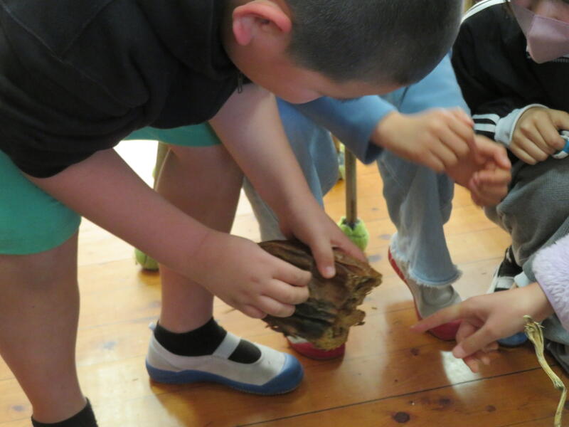 4年生の理科では、「寒くなると」という学習をしています。4月に「あたたかくなると」という学習をしており、その後「暑くなると」「すずしくなると」の学習を経て、今回が4回目で、季節によって植物や動物はどのように変化していくのか様子をしっかり観察しました。サクラ・アジサイ・サザンカ・ウメ・カマキリの卵・ミノムシなどいろいろ見つけていました。アリジゴクの巣も教えてくれ、取って見せてくれました。