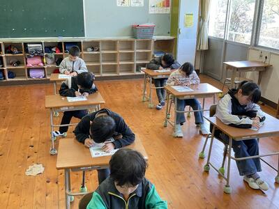 本日から新しい学年がスタートしました。子供たちは学年が1つ上がり,やる気満々の様子でした。「協力する力」,「考える力」,「やり抜く力」のそれぞれで,目標を決めました。例えば,「みんなで助け合いたい。」や「時間を考えて行動したい。」,「わからない問題でもあきらめずに解きたい。」ということなどが書かれていました。書いたことを発表し合うときは,友達の目標を聞いて納得していました。みんな笑顔になっており,明るい雰囲気になりました。