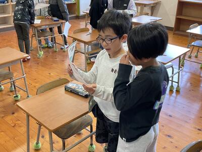 算数の授業で「そろばん」の学習をしました。初めてそろばんに触れる児童も多く,興味津々な様子でした。計算方法がわかると自分たちで問題をつくり,友達と積極的に解きあっていました。