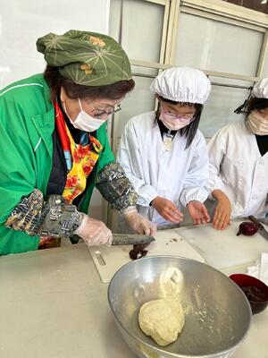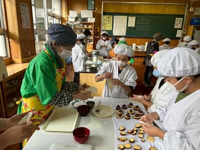 12月12日(金)、6年生が郷土学習「大好き!南関町」の一環として南関あげ巻き寿司づくりに取り組みました。婦人会の方4名に来校いただき、子供たちは分からないところをていねいに教わりながら安心して作業を進めることができました。南関第三小学校の校区にある塩山食品さんからは、油抜きしてだしがよくしみ込んだ南関あげや椎茸、卵などの具材をご提供いただき、心のこもった味わいが生まれました。