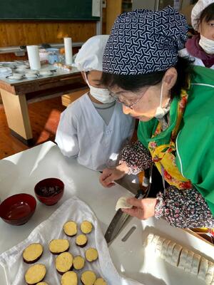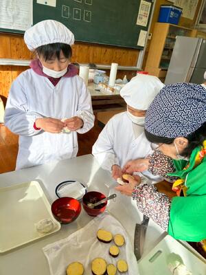 12月16日(火)、4年生は、総合的な学習の時間で取り組んできたサツマイモの栽培を通して、自然の恵みや地域の方々の支えの大切さを学んできました。今年は、17年間にわたってサツマイモづくりを支えてくださった福山正英さん方への感謝の気持ちを込めて、「いも料理パーティ」を開きました。